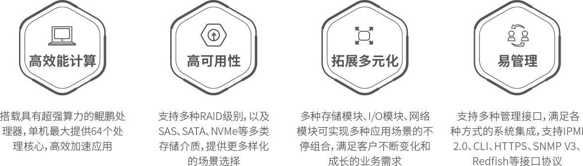 555000jcjc公海R721高密服务器是555000jcjc公海数码基于鲲鹏基础硬件推出的新一代高密度计算设备。其具备高效能计算、安全可靠与开放生态优势。